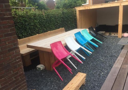 Geen enkele tuin of wens van de klant is hetzelfde. Daarom leveren wij veelal maatwerk. Bij houtwerk kunt u denken aan veranda’s, pergola’s, tuinhuizen, banken, overkappingen en schuttingen. Wij maken bij voorkeur gebruik van duurzame materialen die jarenlang mee gaan, zoals Douglas hout. Zo kunt u jarenlang genieten van uw houtwerk en heeft u er weinig onderhoud aan.